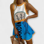 Isoria – Mini Suknelė su Jūrinėmis Notalijomis е свежа рокля в син нюанс с естествен стил. Приемете спокойствие и сигурност с тази мини рокля, която съчетава свободен характер с елегантен дизайн. Абстрактни морски мотиви я правят чудесен спътник за слънчеви излети, сутрешни пазарувания и спокойни мигове у дома. За по-непринуден вид добавете прости бели спортни обувки или меки пантофи.