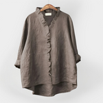 Lengva, Moteriška ir Patogi Bluzonė – Лека и удобна блуза с волан на яка и копчета, подходяща за ежедневни и вечерни поводи. Стилна кройка, която пасва идеално към дънки, поли и елегантни облекла.
