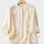 Бродирана Блузка | Кремава Блуза С Флорална Бродерия