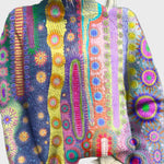 Pinti Golfas su Saulės Raštu – Плетено поло със слънчев мотив, което придава топлина и стил. Свободният крой осигурява комфорт през деня, а уникалната естетика го прави идеален както за ежедневието, така и за по-специални поводи.