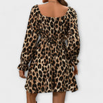 Catarina - Trumpas suknelė su leopardų raštu – елегантна къса рокля с леопардов принт, която съчетава изискано квадратно деколте с женствен силует A-линия. Дългите ръкави я правят подходяща за есен и зима, а рюшове на бюста подчертават фигурата ви с уважение. Независимо дали я носите с ботуши за ежедневие или с токчета за празнични поводи, роклята винаги ще ви даде стил и комфорт.
