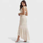 Eduarda - Romantiškos Silueto Suknelė е романтична рокля с елегантен силует за специални вечери. Нежната дантела и изящната кройка подчертават фигурата за изискана визия. Подходяща е за сватби, градински тържества и всички поводи, които изискват деликатна елегантност.