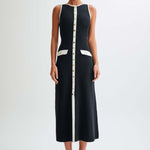 Елегантна безръкавна плетена рокля с копчета по цялата дължина.
