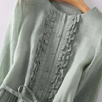 Ilgas Minimalistinis Suknelė – Дълга минималистична рокля в мек зелен нюанс, която излъчва свежест и естествена елегантност. С лек силует и свободно прилягане тя нежно обгръща фигурата и осигурява комфорт през целия ден. Подходяща за всекидневието, както и за по-елегантни поводи през всички сезони.