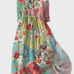 Стилна Многоцветна Рокля Patchwork Принт Цветя По Талията