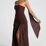 Maxi Suknelė su Klase, Kuri Stebina — без презрамки модел, който ласкае деколтето и подчертава женствеността. Изчистен, но ефектен силует за безупречно държание през цялата вечер. Подходяща за вечерни изяви, официални събития и специални поводи.