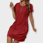 Mini Suknelė su Trumpomis Rankovėmis ir Užtrauktuku Dekolte – Променете ежедневието си с тази бордо рокля с къси ръкави. Простият и удобен дизайн придава стил без излишъци за всеки ден. Комфортна линия: свободна форма, която ласкае всеки силует без ограничения. Елегантно деколте с цип добавя модерен акцент към вашия стил.
