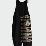 Ретро гащеризон със флорален принт – стилен и елегантен избор за всякакви модни сцени. Черен фон с пясъчни шарки и декоративни елементи придават артистичен характер.