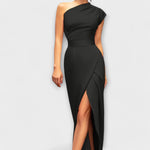 • Уникален дизайн: Асиметричният силует и диагоналното деколте придават изискан стил и модерна визия.