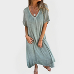V-kaklo suknelė – ярко оранжева рокля, която допринася за летен стил и абсолютен комфорт. Нейният свободен силует пада красиво по тялото, а леката материя създава усещане за лекота през целия ден. Идеална за топлите дни и ежедневни излизания, роклята комбинира стил и удобство за всеки повод.