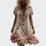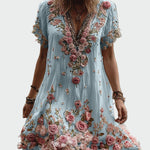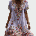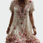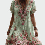 Vintažo stiliaus suknelė su trumpomis rankovėmis ir elegantišku gėlių siuvinėjimu Позволете на романтиката да изплува с тази лека рокля, богато бродирана с релефни флорални мотиви. Тя подчертава женствен силует и е идеална за специални поводи и летни пътувания. Комфортът на лек и прохладен плат осигурява удобство през целия ден.