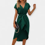 Žalias Midi Suknelė su Stiliumi е лека midi рокля, която излъчва естествена елегантност и комфорт.