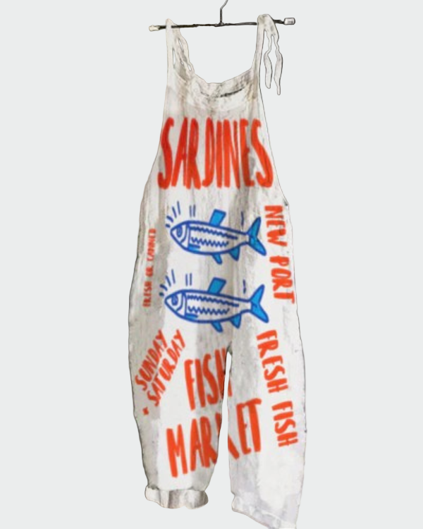 Ретро Дамски Гащеризон | Стилен Гащеризон С Принт Sardines