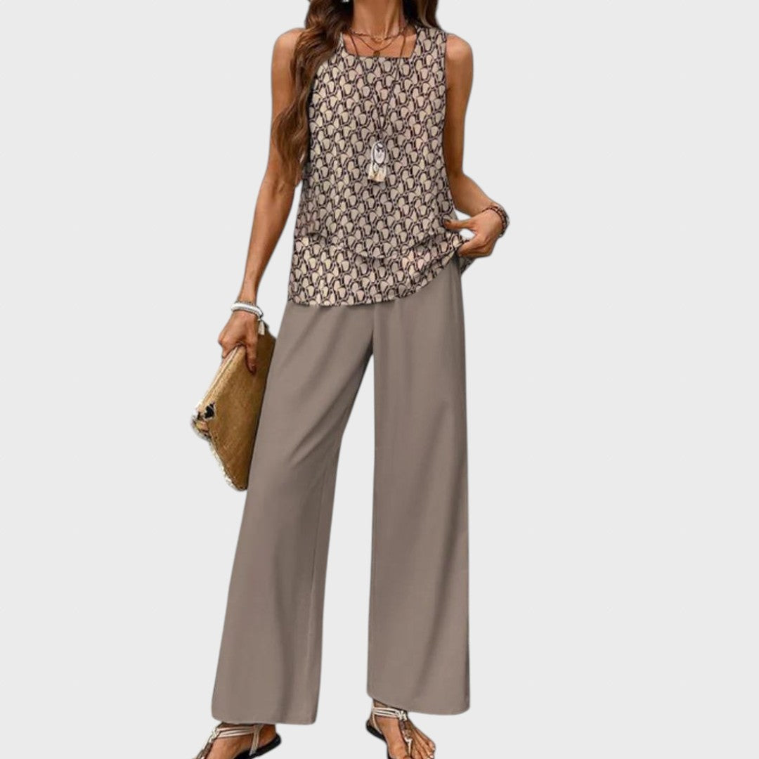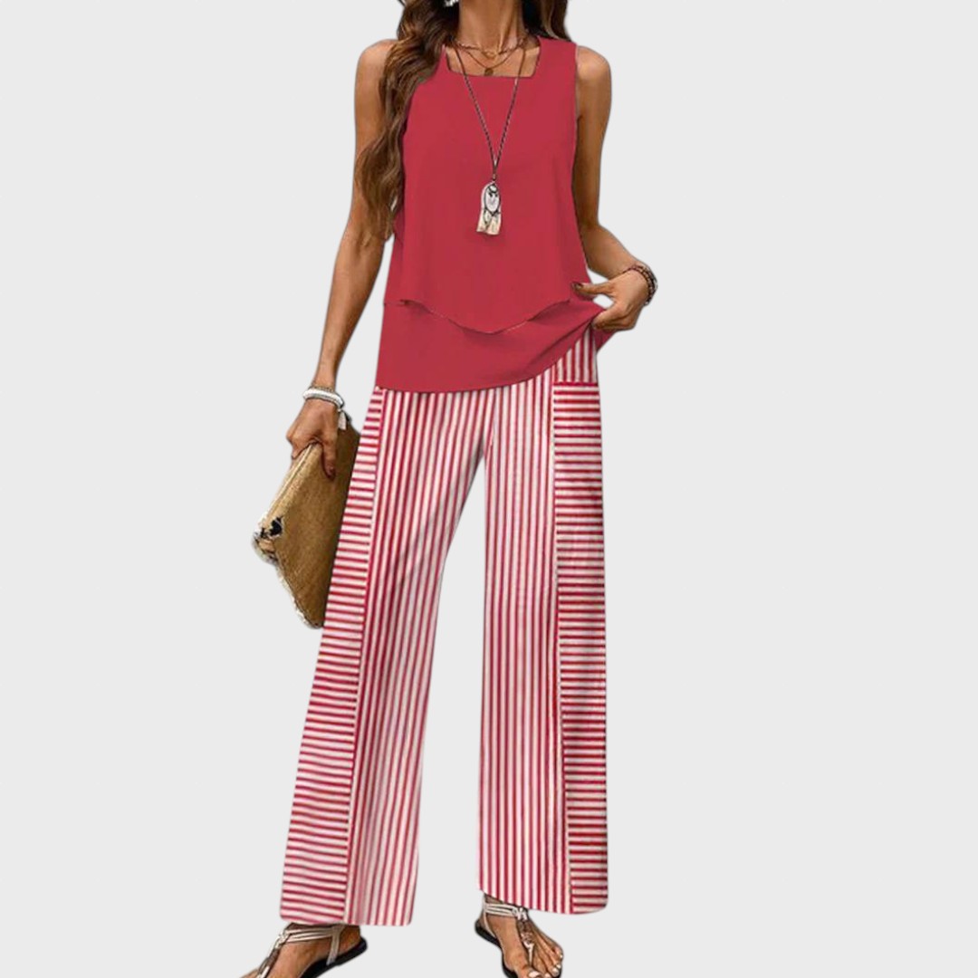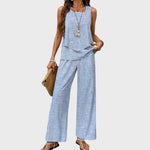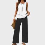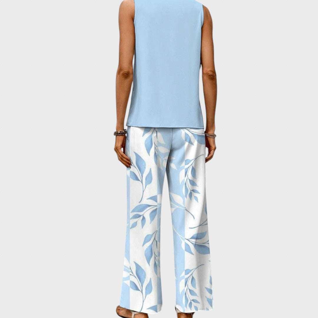 Белина е създаденa за жени, които обичат елегантността без усилие. Този двукомпонентен летен комплект включва ефирен наслоен топ и широк панталон с висока талия – съчетание от комфорт, стил и женственост. Идеален за слънчеви дни, пътувания или непринудени срещи с приятели.