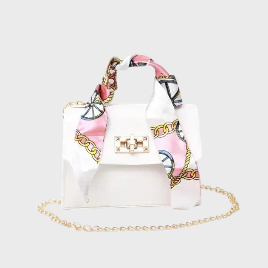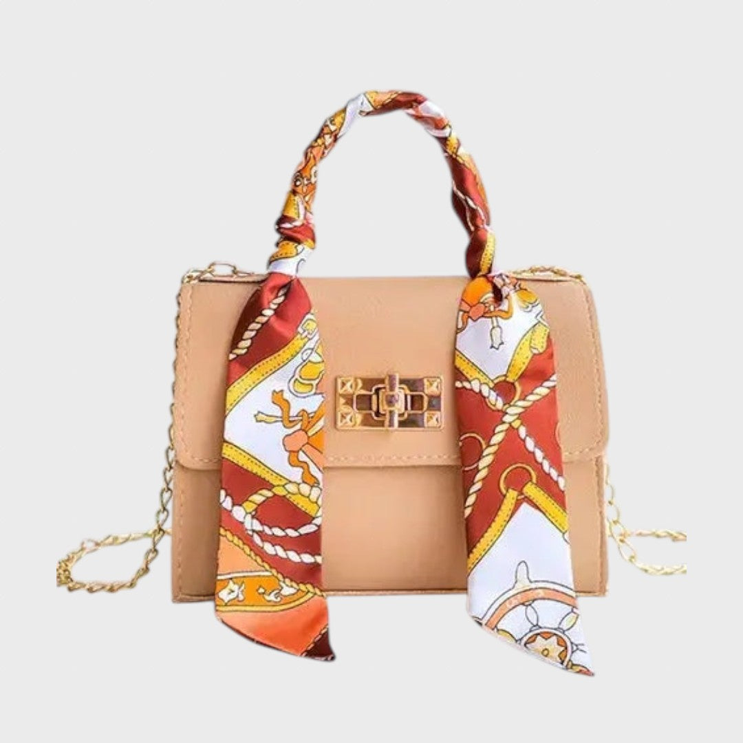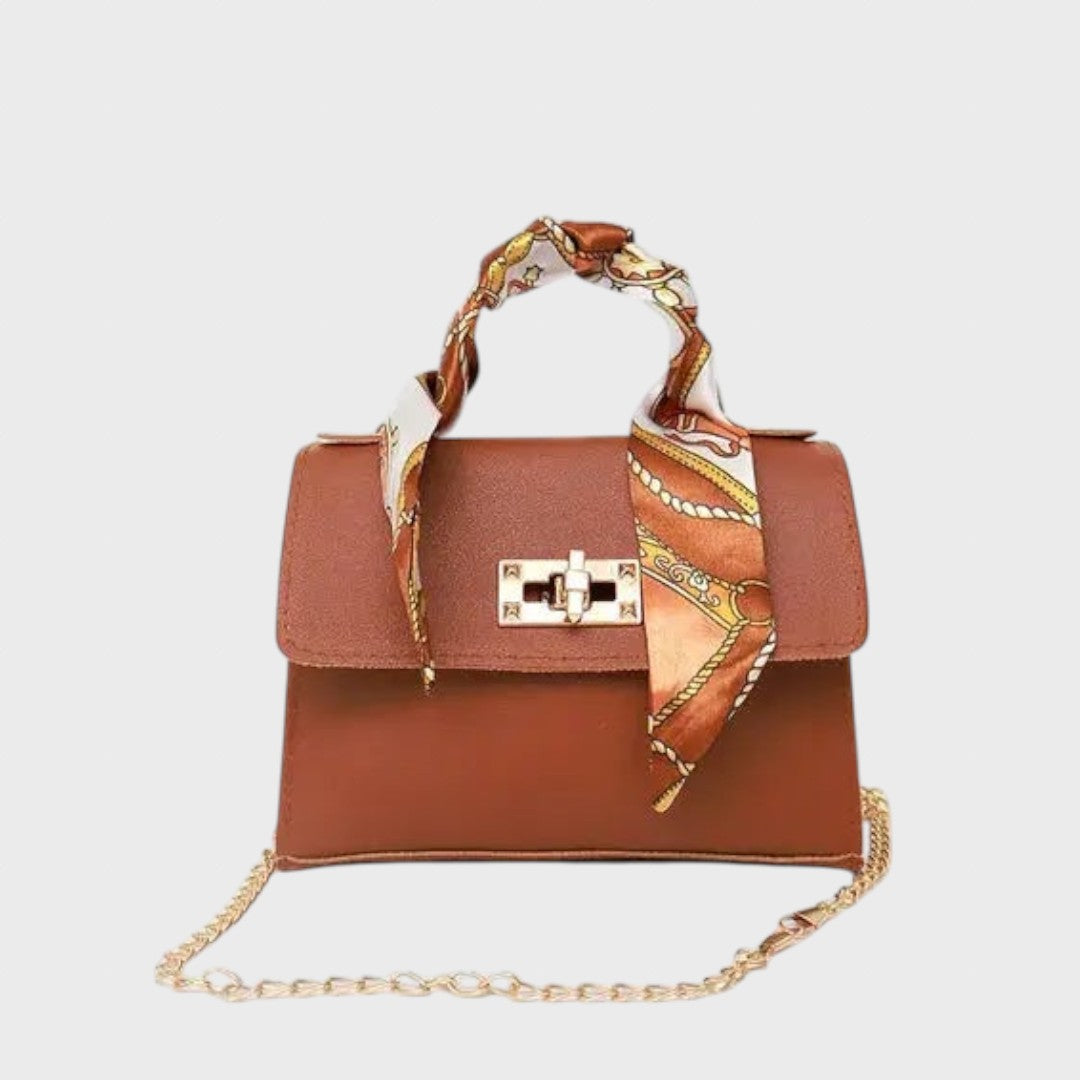 Зара е изискана дамска чанта, която съчетава класически дизайн с модерни акценти – идеалното допълнение към всеки тоалет. Изработена от висококачествена кафява кожа, тя впечатлява с луксозен златист закопчалък и дръжка, обвита с цветен шал за игрив и уникален завършек. Независимо дали сте на изискана вечеря или на разходка през деня, Зара придава стил и класа на всяка визия.