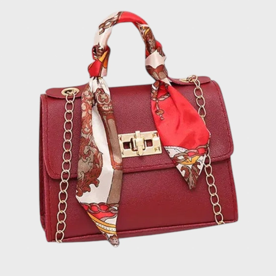 • Елегантна визия – съчетава класически кожен дизайн с декоративен шал за изискан и стилен акцент.