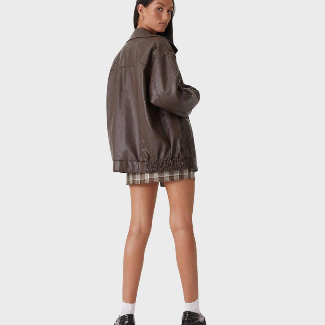 Людмила съчетава модерна визия и комфорт в едно универсално яке, което ще стане незаменима част от гардероба ви за есента и зимата. Изработено от висококачествено изкуствено кожа с мека вътрешна подплата, то предлага топлина, удобство и свобода на движение. Oversize кройката и непринуденият силует го правят идеално допълнение към ежедневни, улични или по-стилни визии.