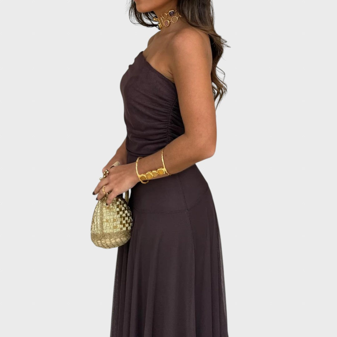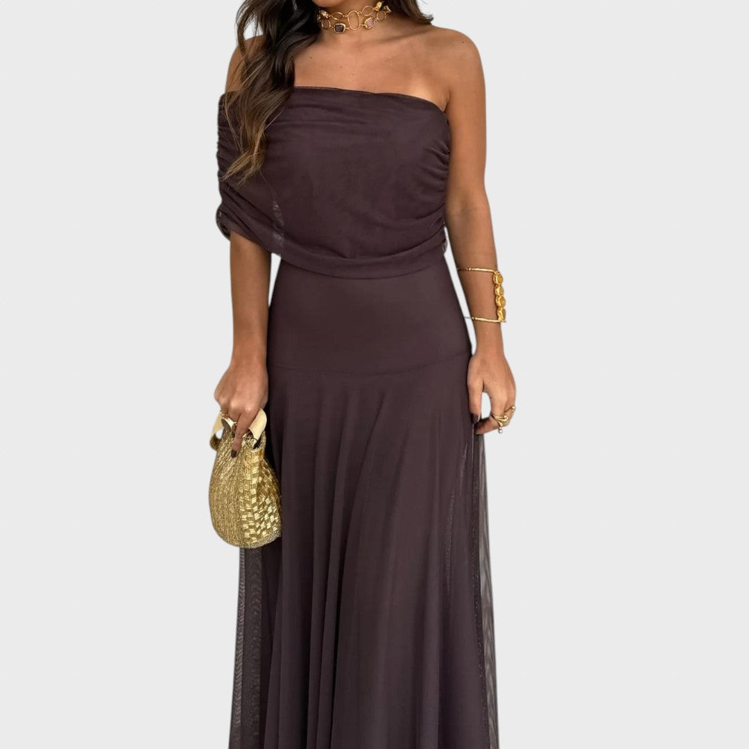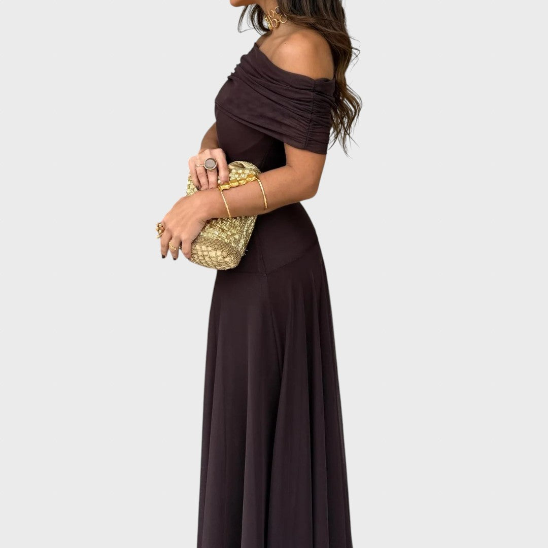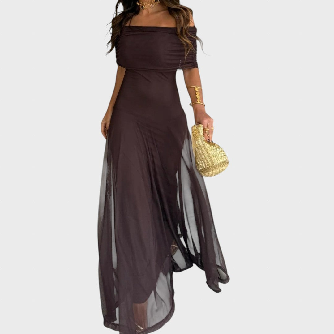 Нели – Ефирна макси рокля с рамене тип