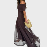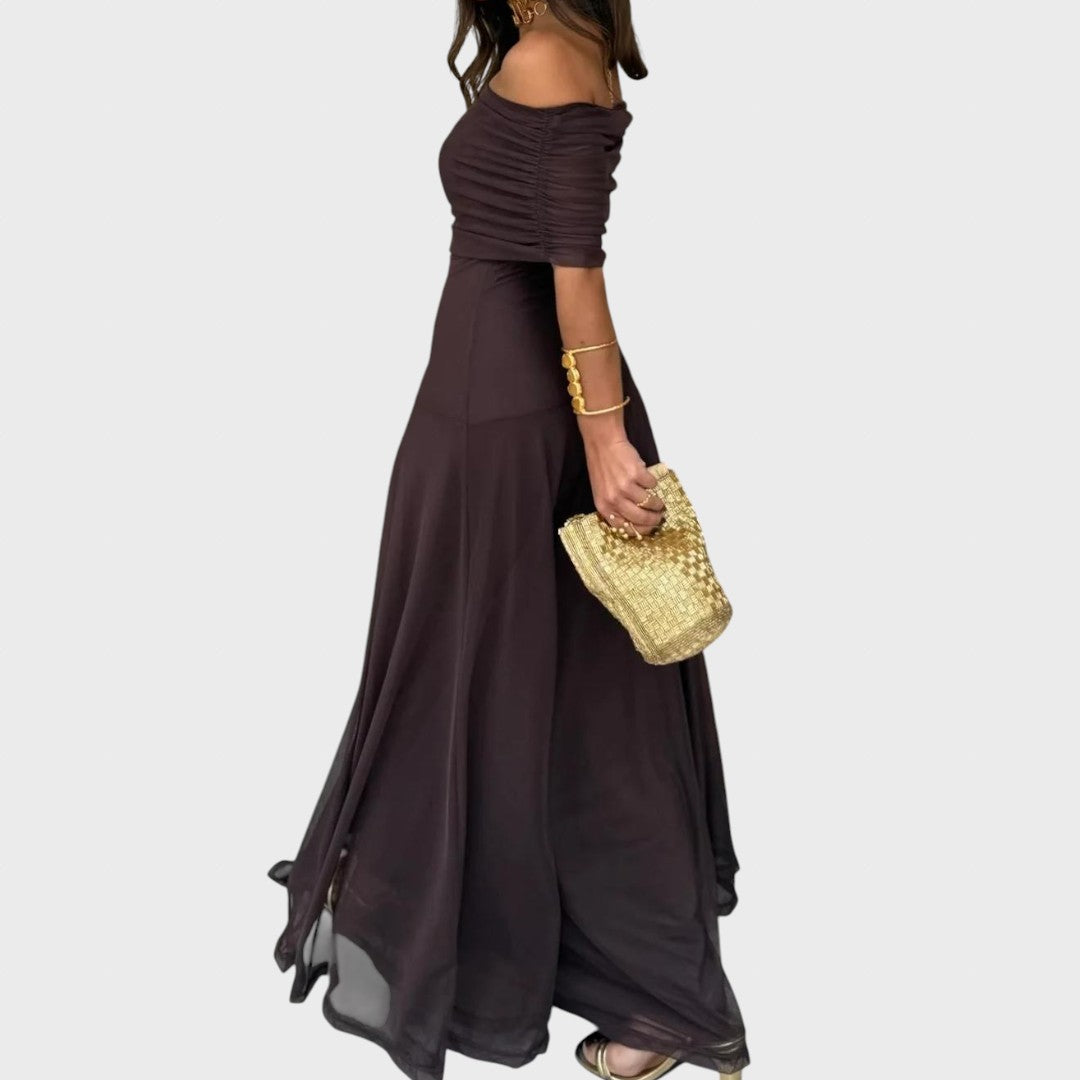 Нели | Дълга шифонена рокля с открити рамене