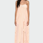 Ažailos Maxi Suknelė елегантна макси рокля с плавно движение и женствен силует, който нежно обгражда фигурата. Изящество в деколтето и тънките презрамки подчертават шията и раменете, докато оформянето на талията добавя елегантност. Перфектна за сватби, кръщенета и всякакви специални поводи.