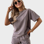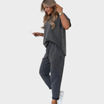 Kasdienis komplektas su marškinėliais ir jogger kelnėmis – modernus komfortas ir minimalistinė estetika, idealiai tinka miesto pasivaikščiojimams, kavinių vizitams ar nerūpestingoms akimirkoms namuose. Švelni medvilnė suteikia kasdienį patogumą, oversized marškiniai užtikrina laisvą ir universalų kirpimą, o pilka spalva lengvai derinama su sportbačiais ar šlepetėmis.